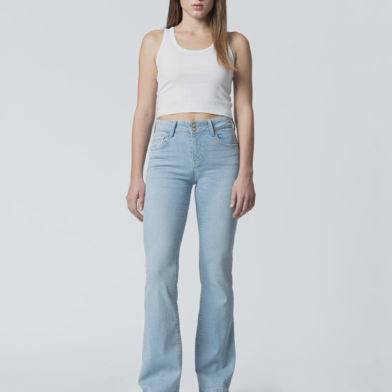 Damjeans från Tiffosi har en stilren design och erbjuder en modern och elegant look. Dessa Light push-up 255 bootcut jeans är särskilt designade för att ge en subtil lyft och form åt figuren. Bootcut-stilen, som är känd för sin lätt utställda form från knäna och ner, ger en balanserad och smickrande silhuett som passar till olika kroppstyper.